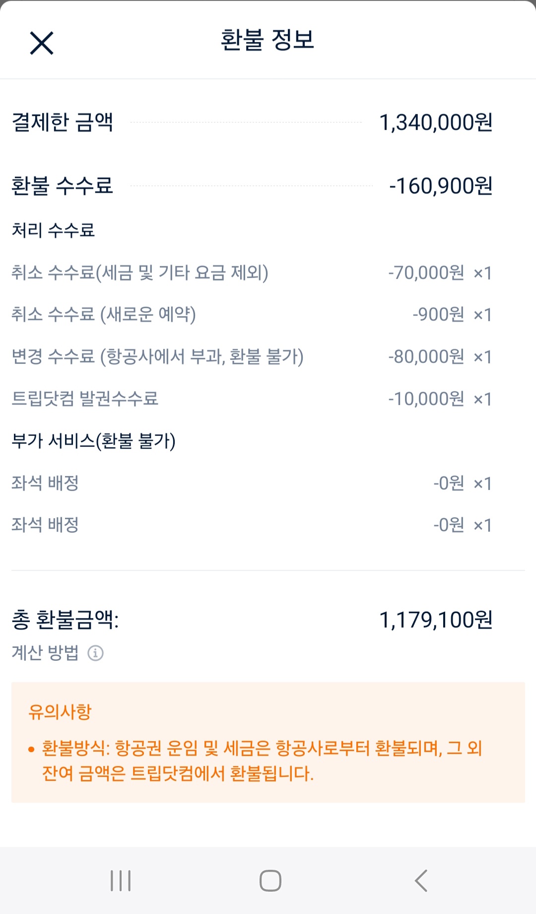 3만원 추가 결제후 1179000원이 환불되네요