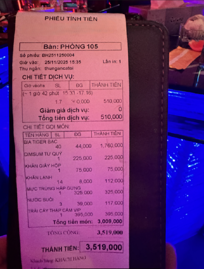 3명 맥주40 안주 과일 1 시킨거 2 (은근히맛남) tip