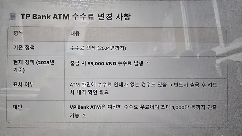 문제는 두번째 인출을 한 TP뱅크 ATM ...