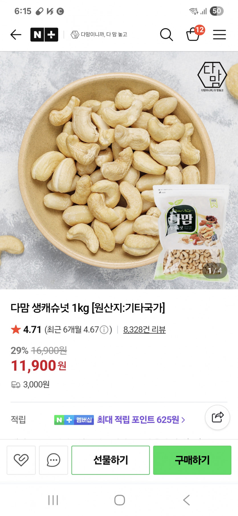 그런데 품절...역시 구독자가 많으니 품절도 순식간인듯합니다^^ 저번에 꽛화롭 망고 수출로 말도 많았는데 이번엔 프리미엄급 캐슈넛이라고 하지만 가격때문에 말이좀 있더라구요..그래도 품절인걸보면 영향력이 엄청난듯합니다^^;;