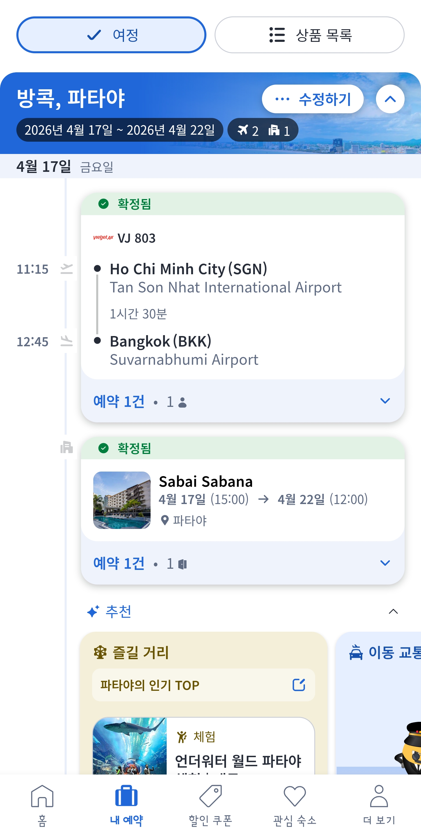 태국일정도잡앗네용 좀비 0 19 0 04:12 자다가 깻는데핸드폰 뒤적뒤적 거리다미루던 태국 비행기.숙소 예약다햇네요비행기값 16만숙소 5박6일 31만....분명 예전에갓을때는비행기값 5만원때?숙소는 1박당 2~3만원이엿는데송크란때문인건지 엄청비싸네요....그래두 예약다하니까 맘이편하네요 ~~ 0