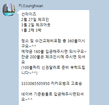 2월 1룸 2개 예약 완료 했습니다