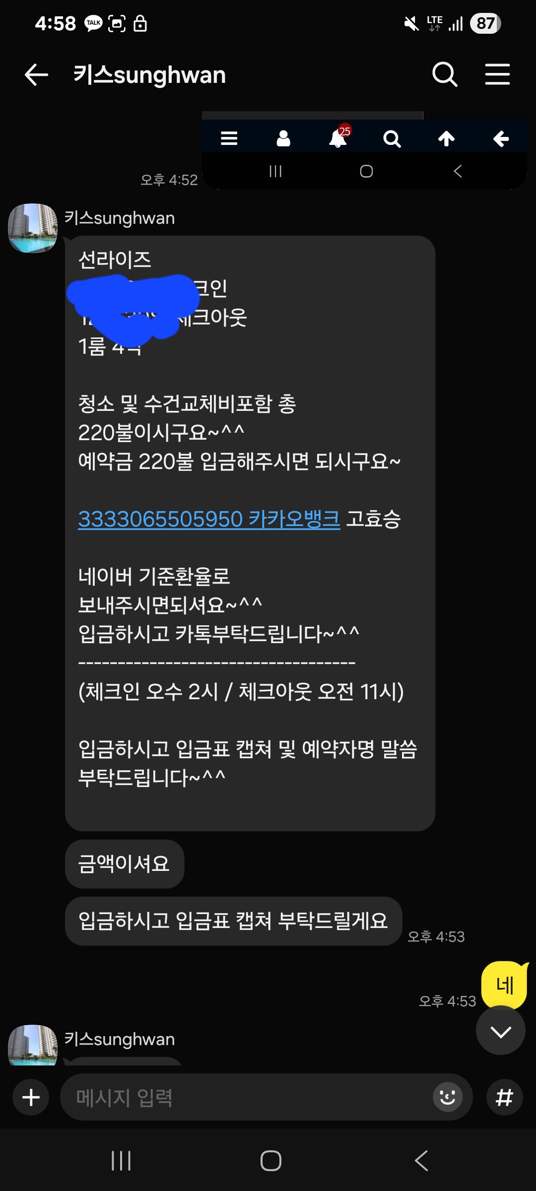숙소예약완료 했습니다