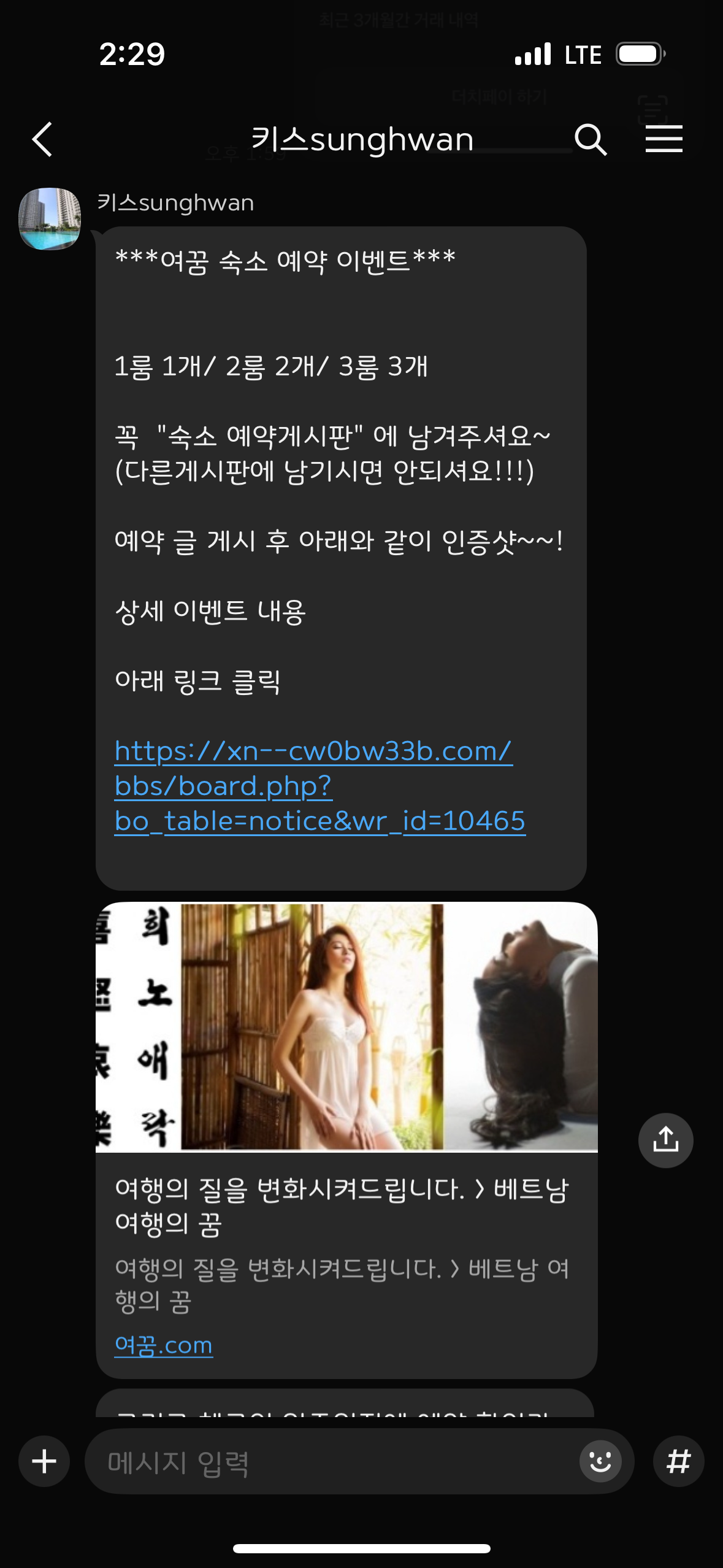 아파트 3룸 4박 예약 완료