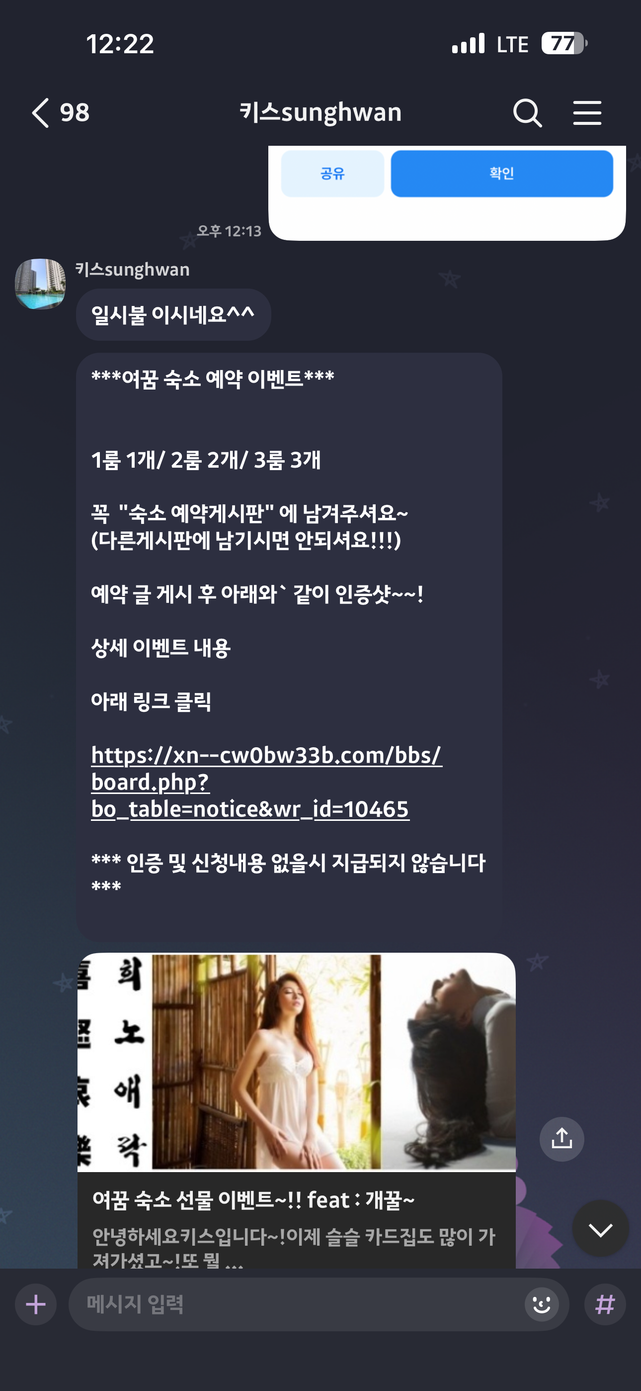 숙소 1룸 예약 완료~!!