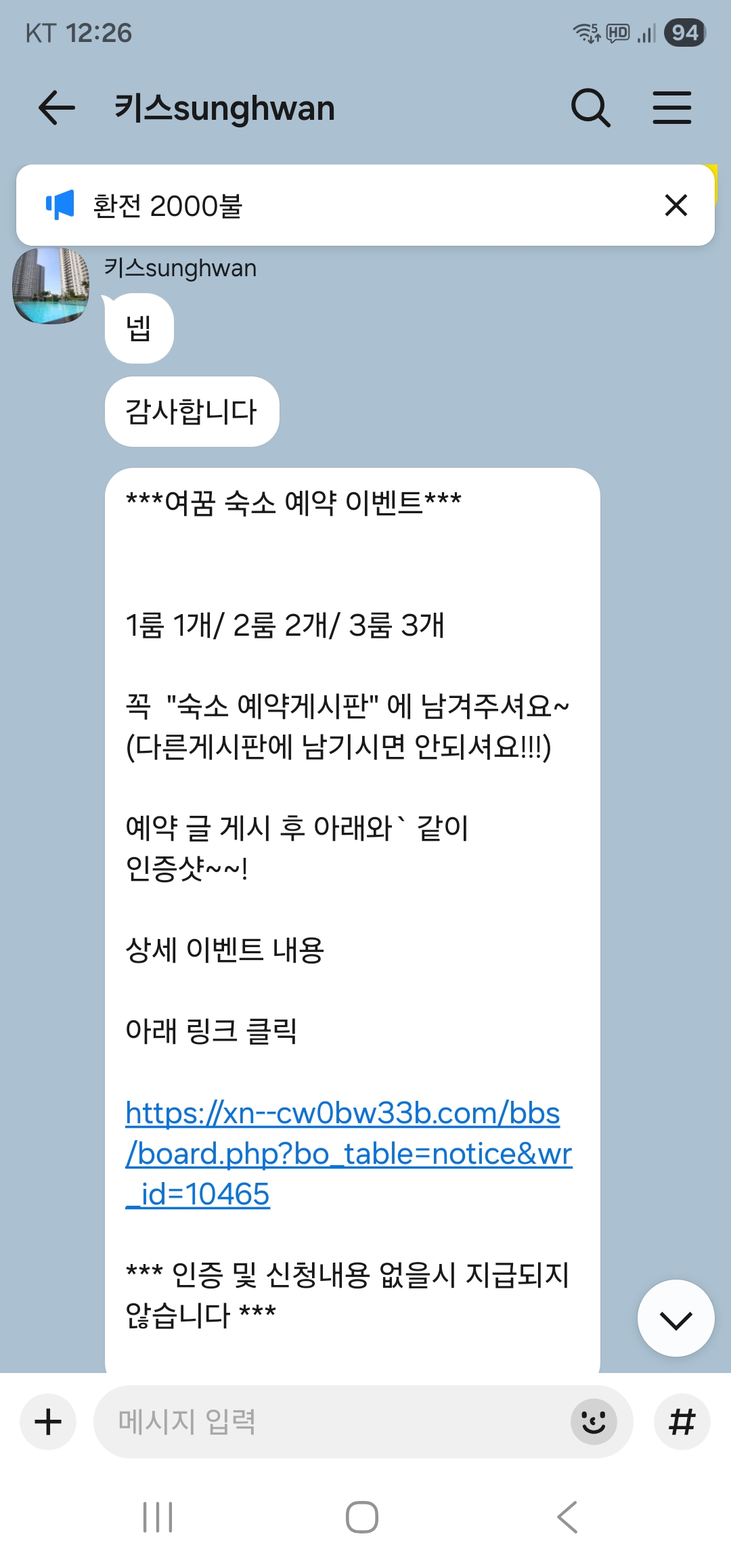 선라이즈 노스타워3룸(6월11-16) 예약완료