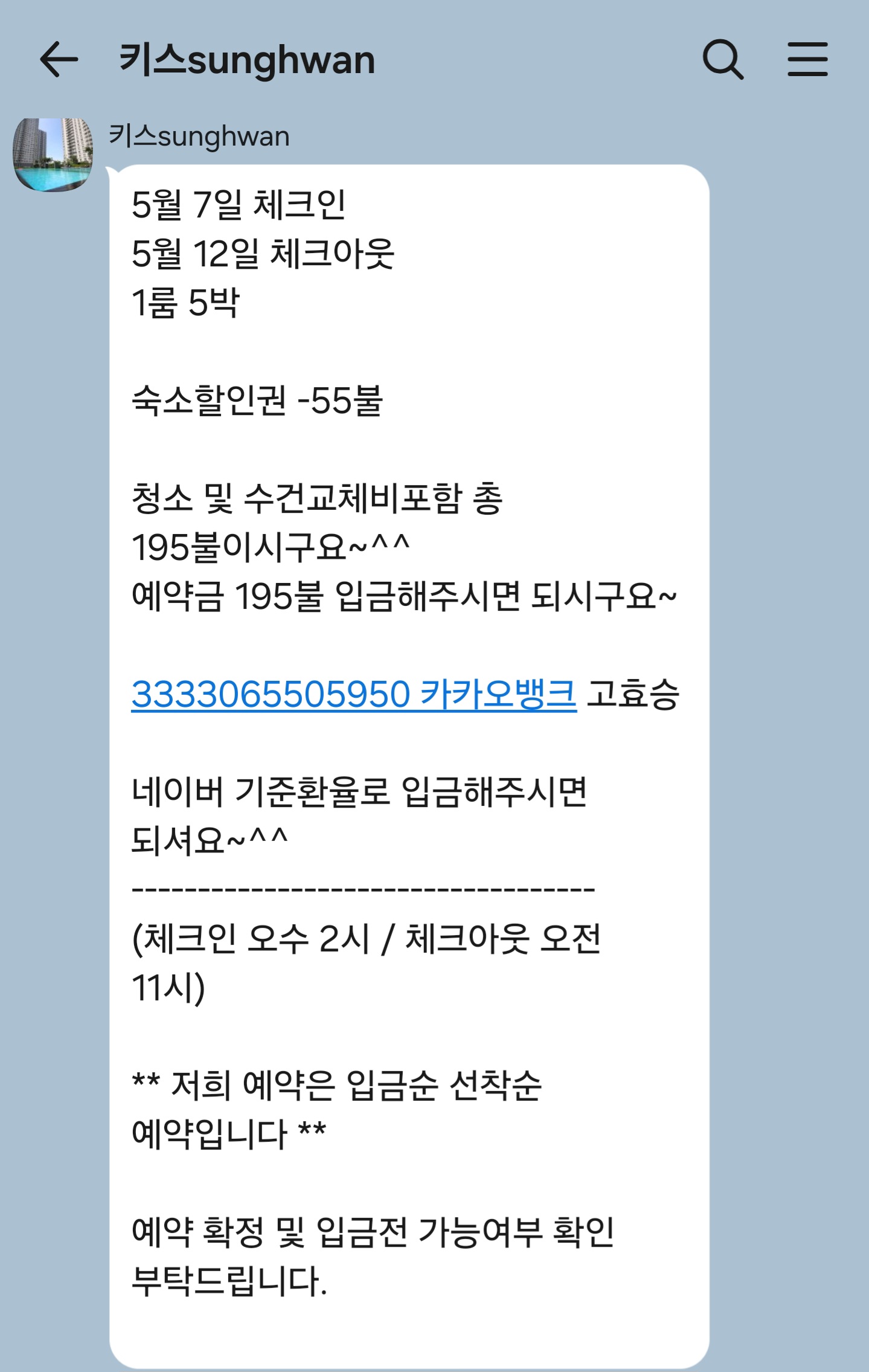 여꿈 숙소 예약 완료