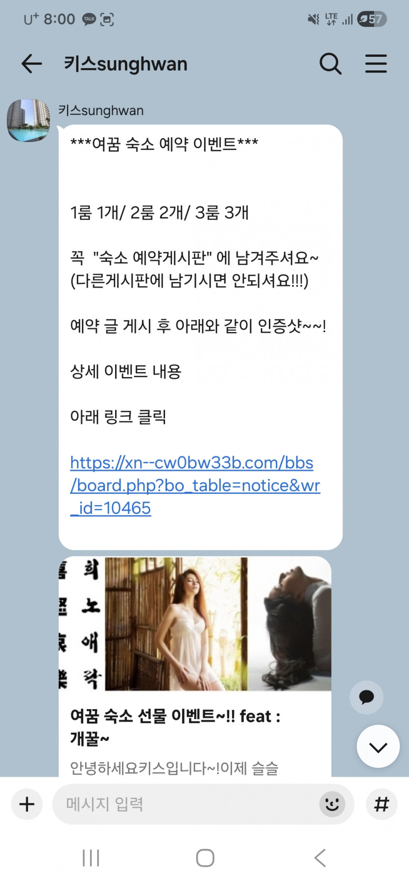 키스 카톡 (숙소 문의)