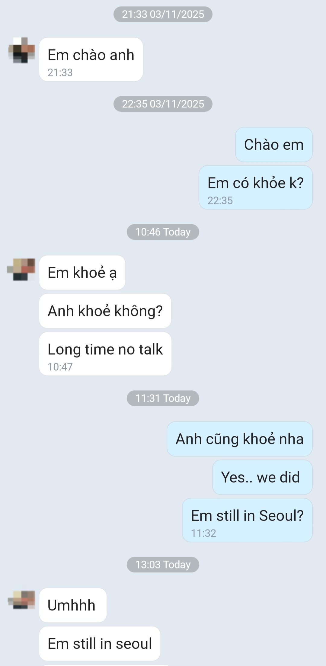 Em chào anh 하더니 아직 서울에 있다네요