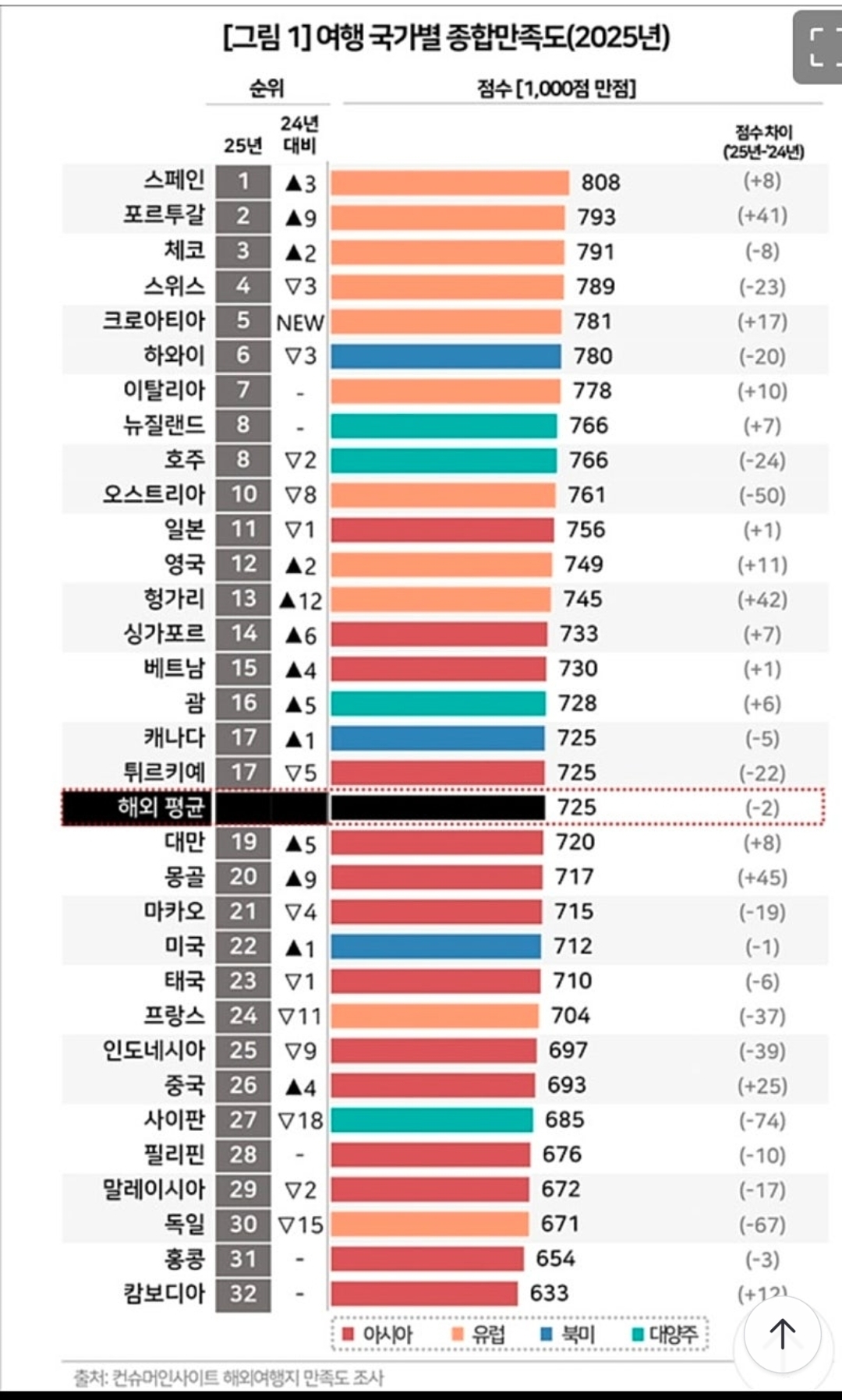 한국인 최애 해외 여행지 조사표