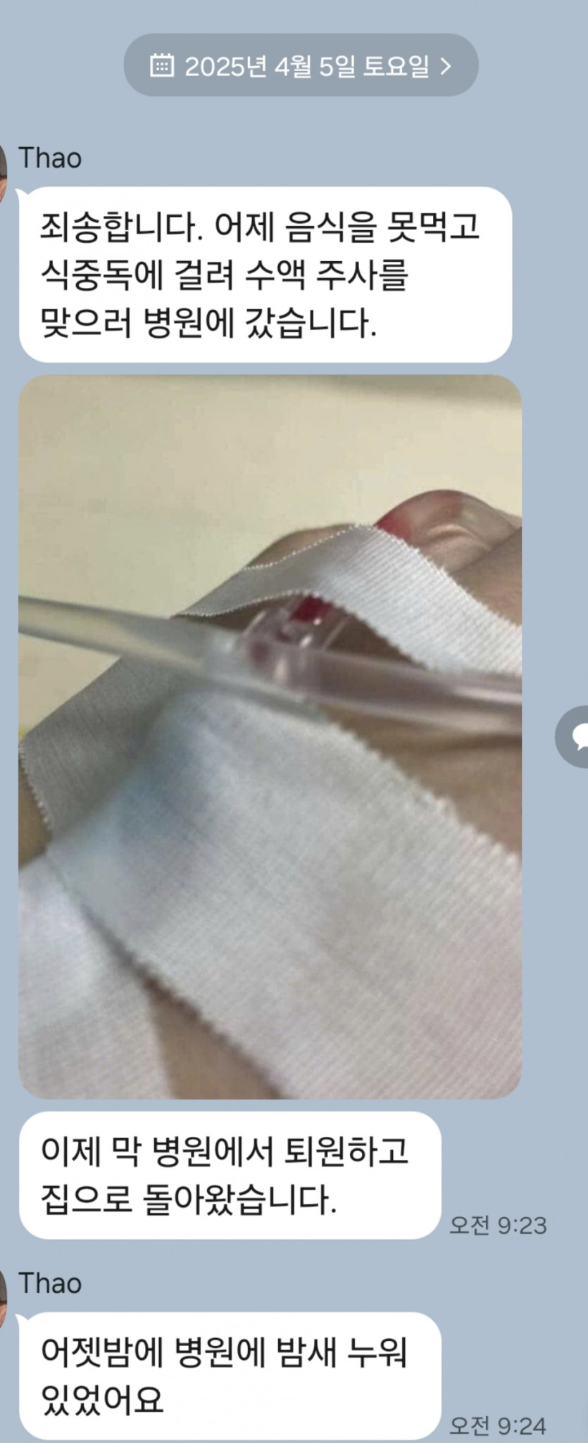 썬라도착 샤워하기 전까지 연락주고받고