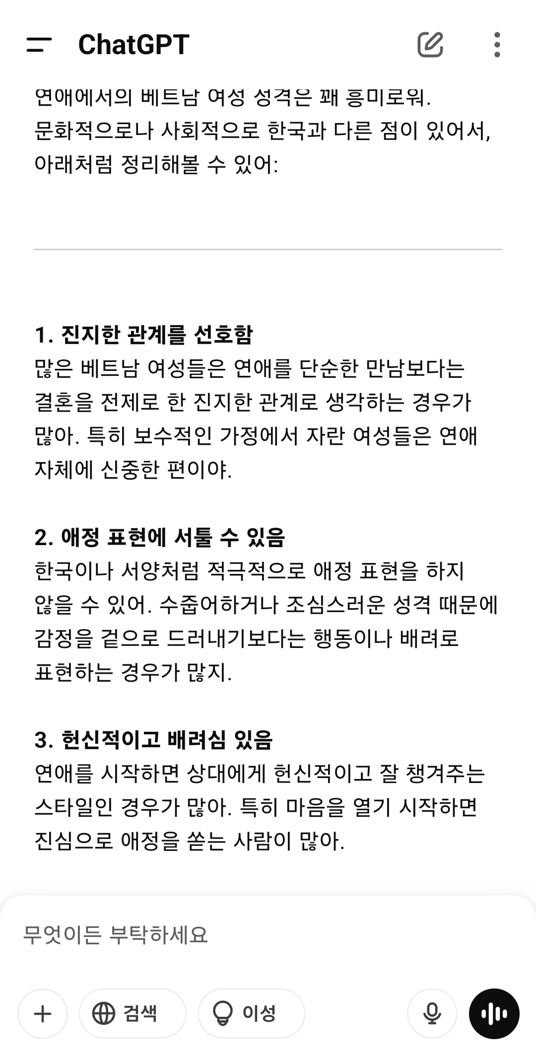 chat gpt에게 물어본 베트남 여성과의 연애