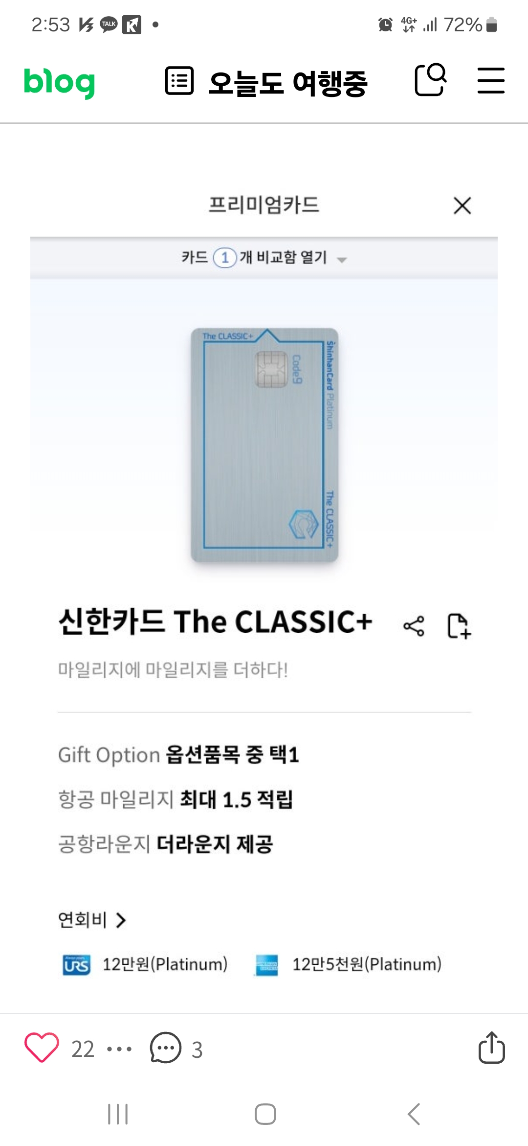 그런데, 라운지 이용 가능한 카드의