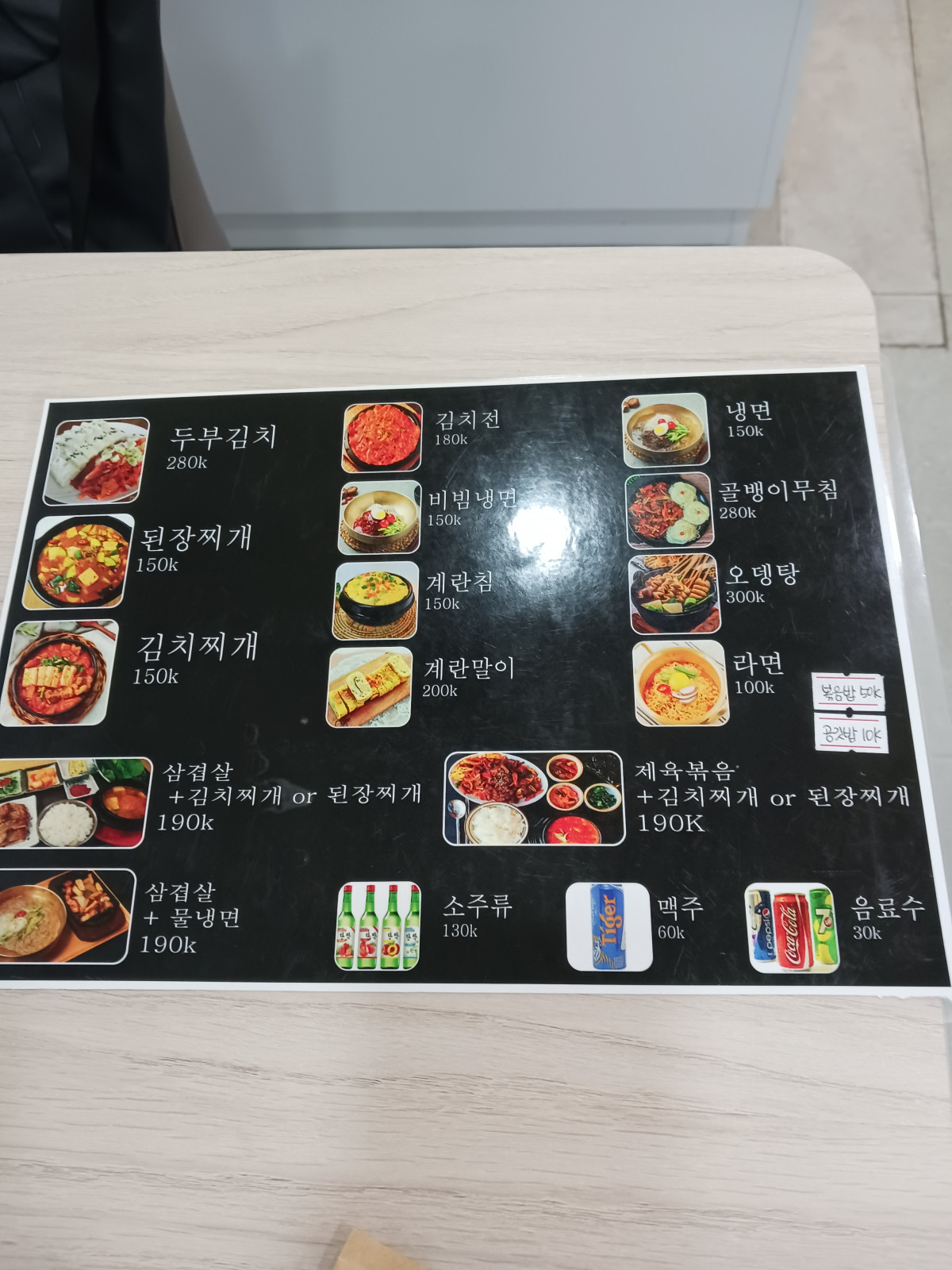 1군 대패삼겹살 가격표입니다.