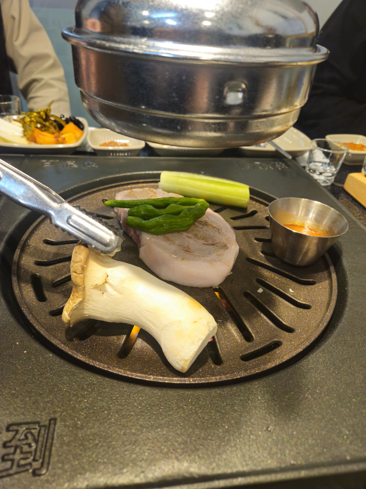 직접 고기도 구워주고 불판옆에 식지 않도록 사이드에 열온도가 유지가 되는...ㅎ