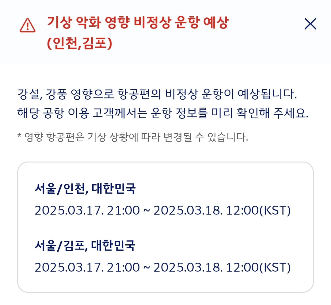 3월 17일 밤부터 18일 오전까지 비행기 지연