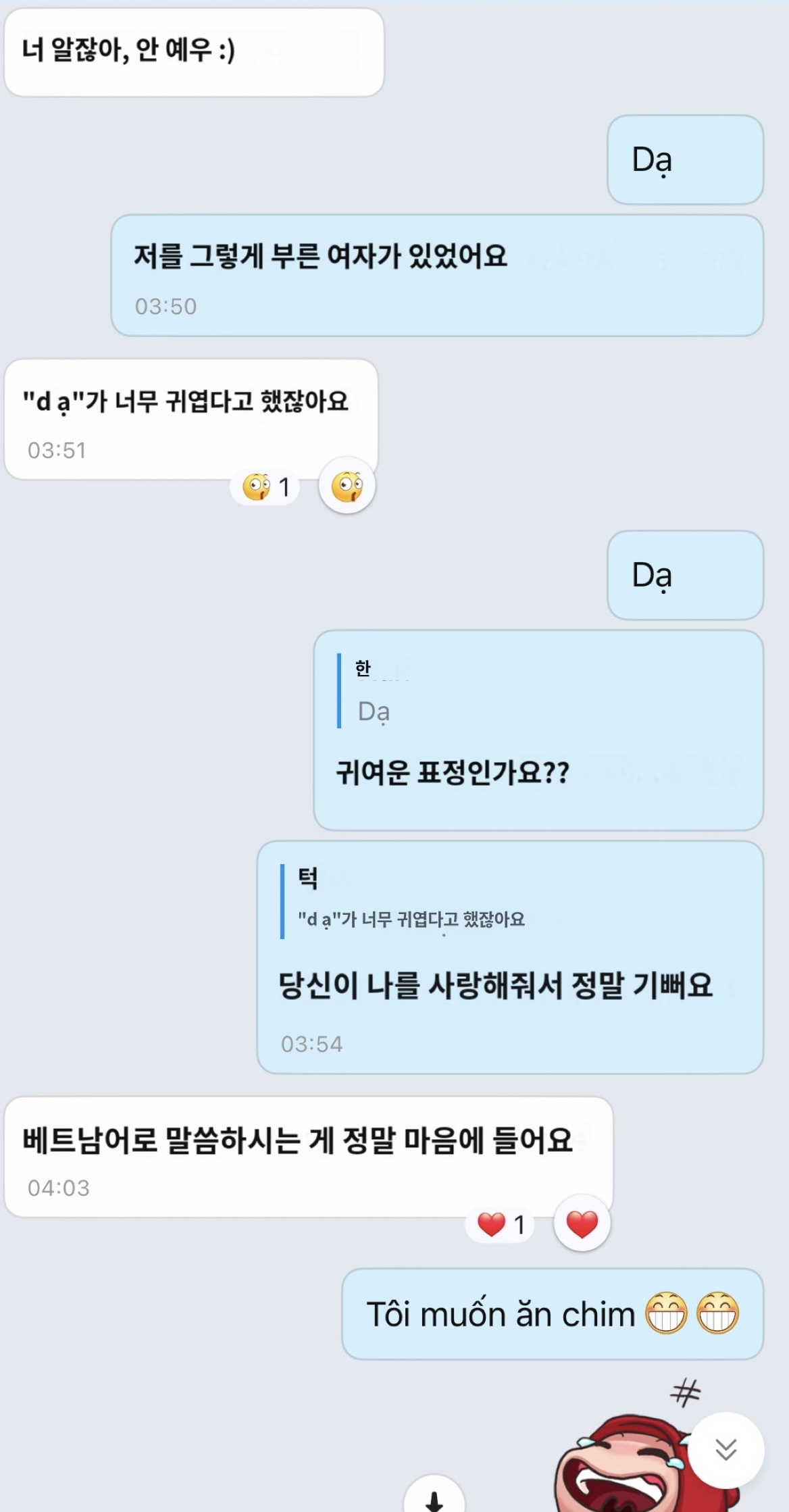 유쎄이 Dạ 쏘큐트 ^^ Dạ 라고 말하는 제가 귀엽다고 ㅋㅋㅋ