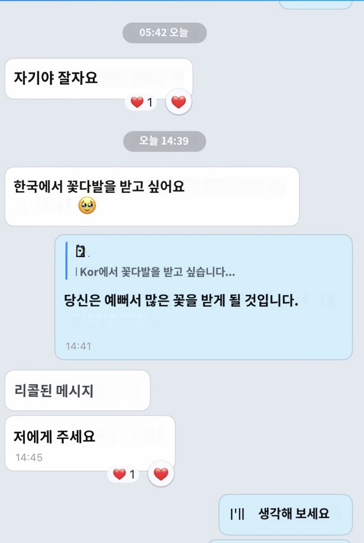 내일 만날때 꽃다발을 받고 싶답니다.