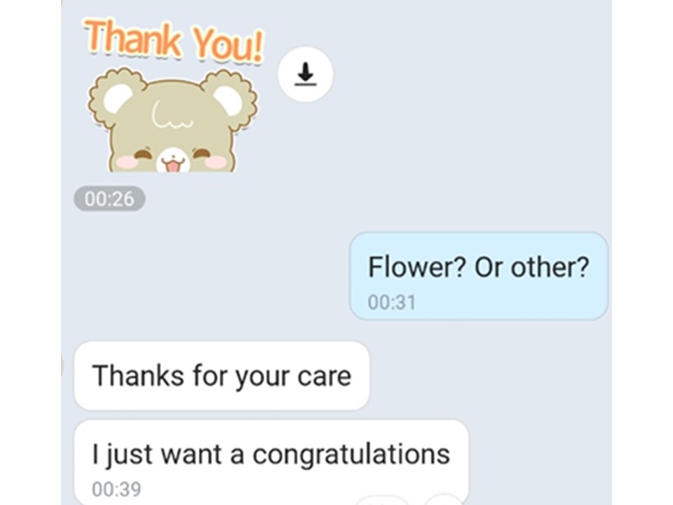 그랬더니 아래와 같이 감사하다고 해서 꽃이라도 보낼까 했는데 아래와 같이 대화가 진행되었습니다.