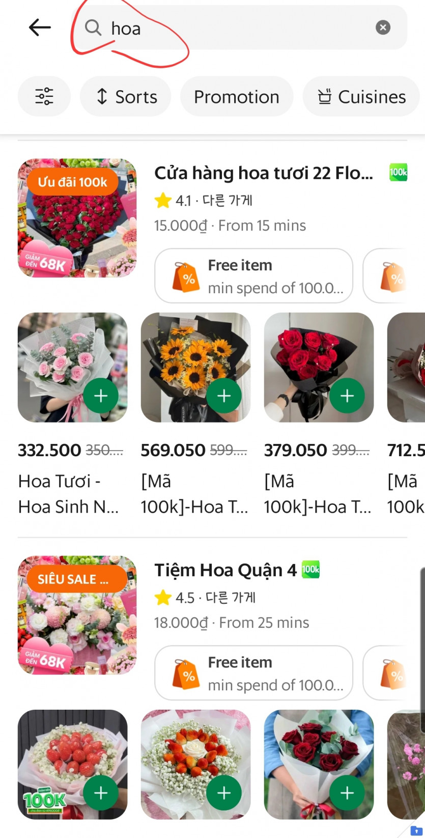 배달K로 보니 배달 가능한 꽃다발 가격이 살벌하군요;; 280만동;;