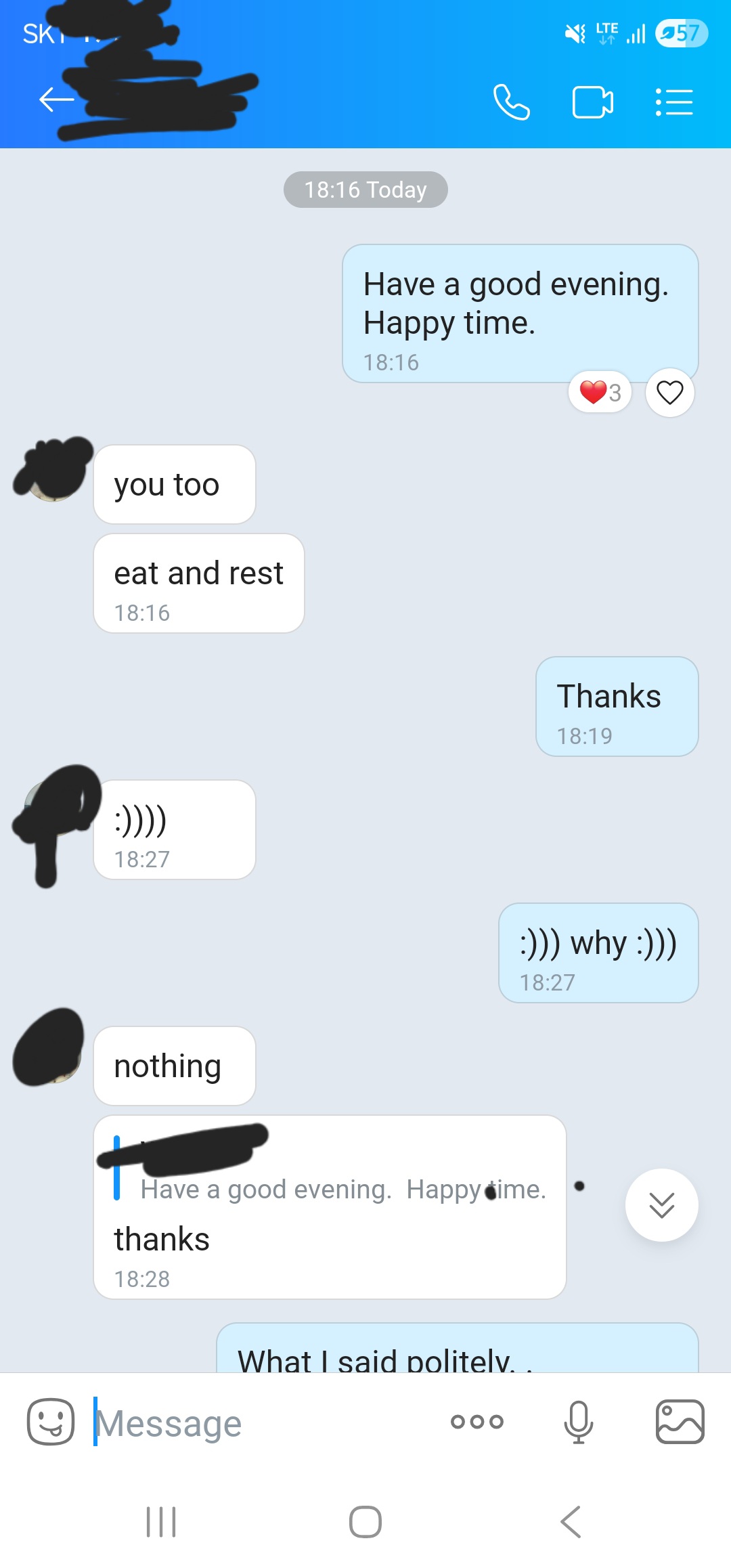 일반적으로 연인끼리는 저녁 시간 잘보내라~ 하고 대화를 끊어 버리지 않지요.
