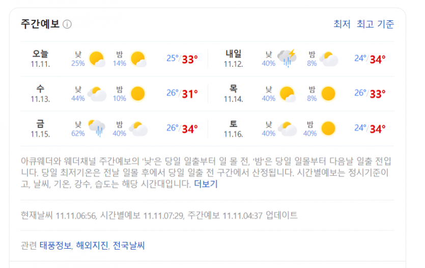 호치민 11/18(월) 주간예보 및 11/19 월드컵3차 예선요~^^