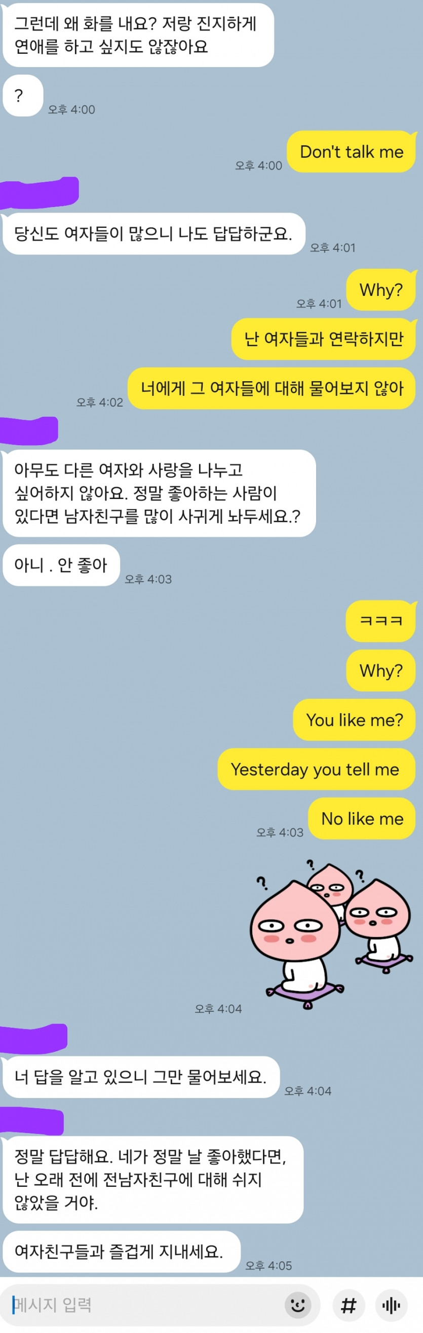 그래서 데이트할때도 편하고, 감정의 골이 깊어지기 전에 대화로 해결되는 경우가 많음