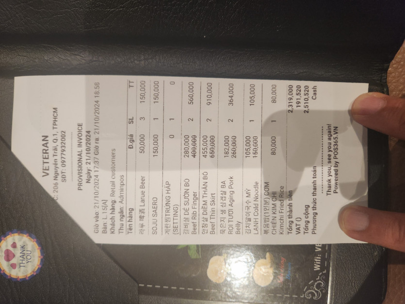 베테랑에서 느낀점은 직원 서비스와 고기 퀄리티가 한국 프리미엄 한우집 비빌만큼 높음을 느낌
