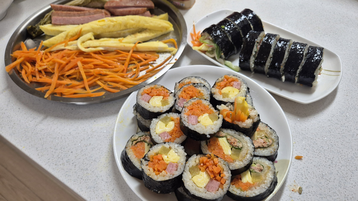 점심때 김밥이랑 꼬치오뎅 떡볶이를 열심히 준비해