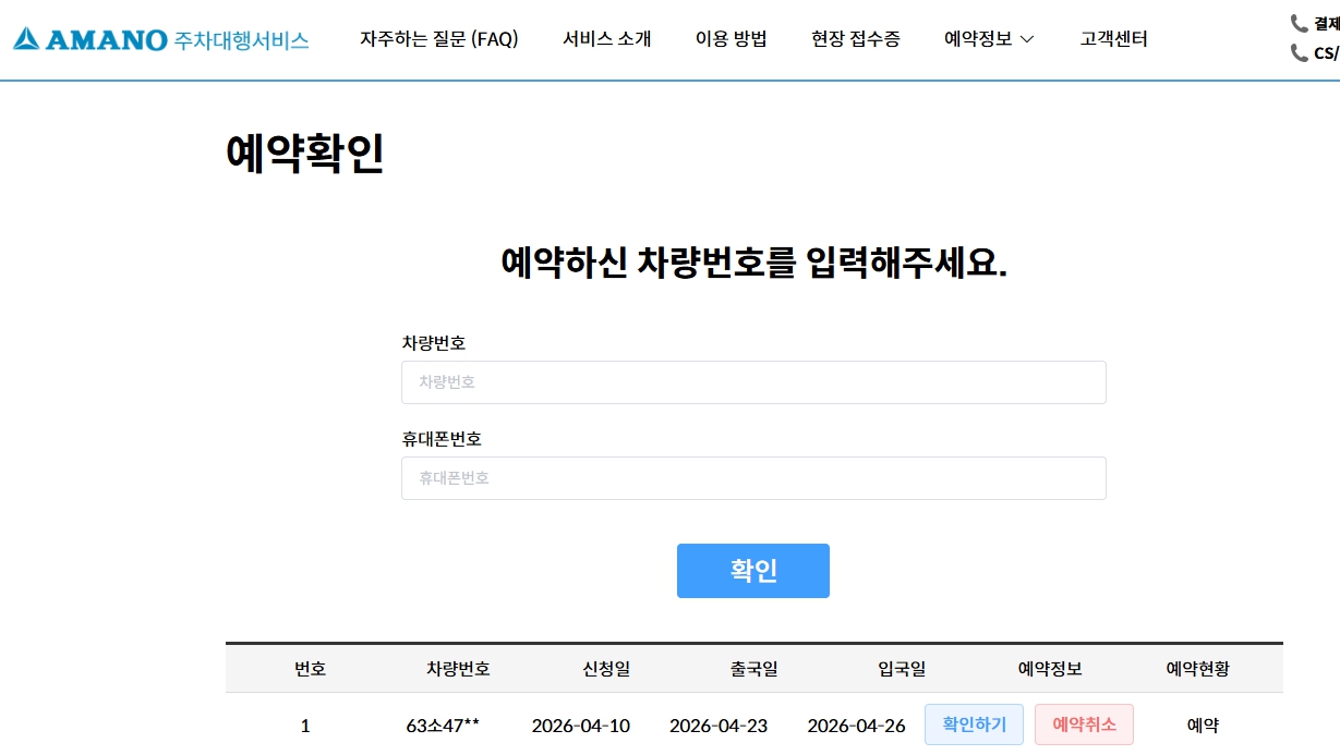 인천공항 2터 발렛예약 완료!!!