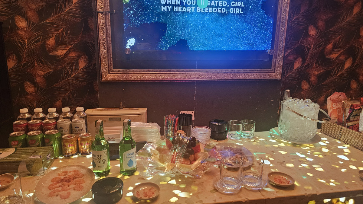 지인 총 2명이서 그 좁은 룸안에 꽁들 5명이랑 있으니