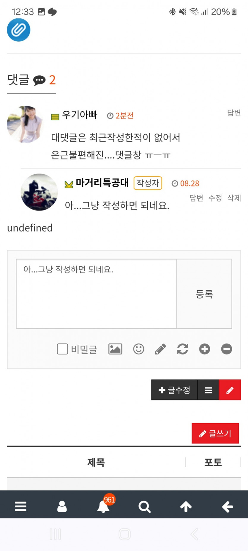 대댓글 오류인가요?