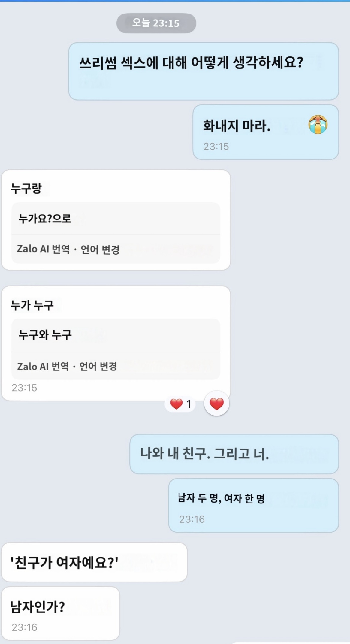 반응이 나옵니다. 차분하게 누구와 함께 하냐는 꽁.