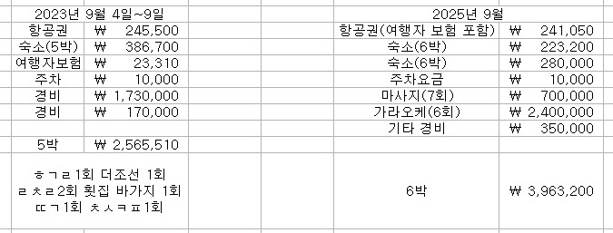 2년전 5박 일정으로 250썼는데 이번에는?