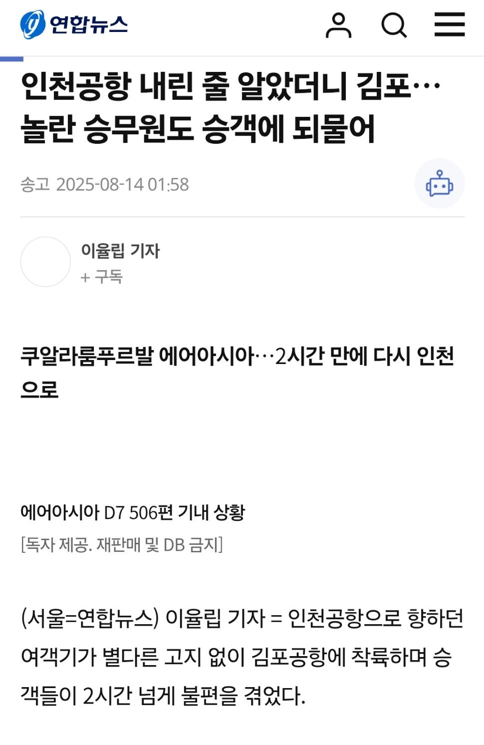 승무원도 이유도 모르고 어리둥절...참네...