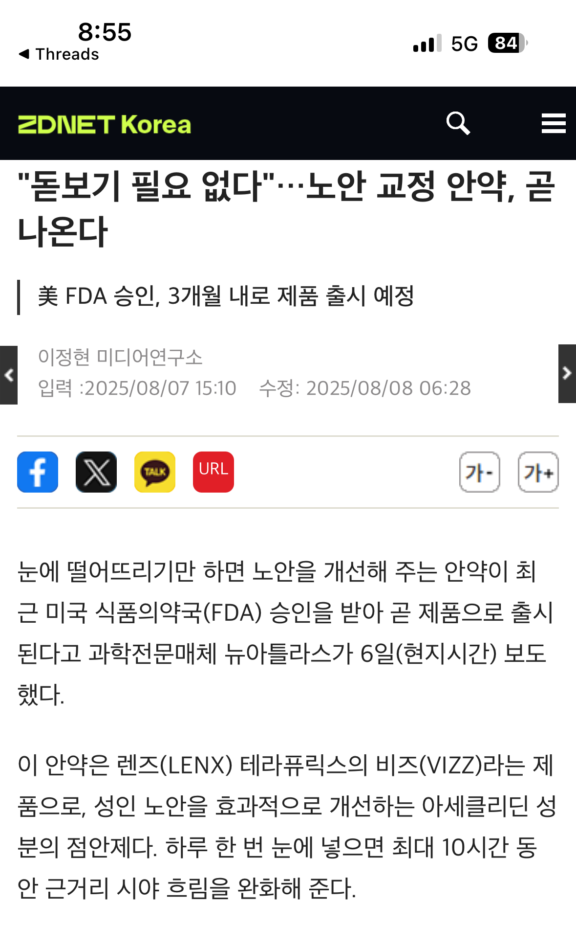 노안을 개선 해주는 안약이 나온다네요