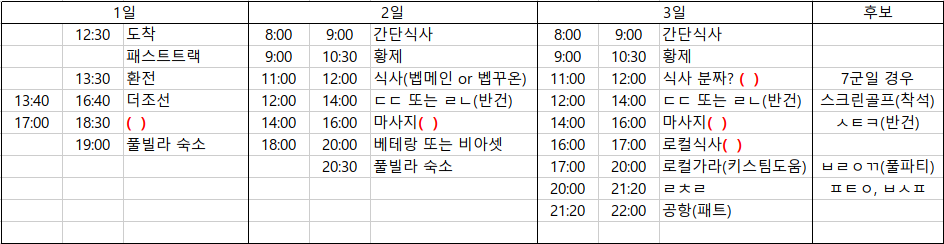 아주 짧은 일정이지만 타이트하게 아래 표와 같이 일정을 계획해 보았습니다만