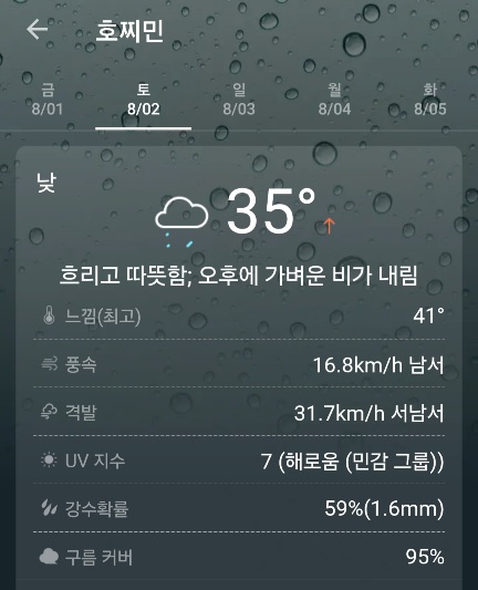 8월 2일 호치민+한국 날씨