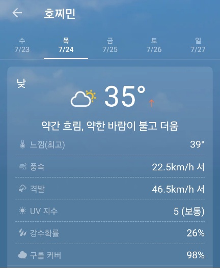7월 24일 호치민+한국 날씨