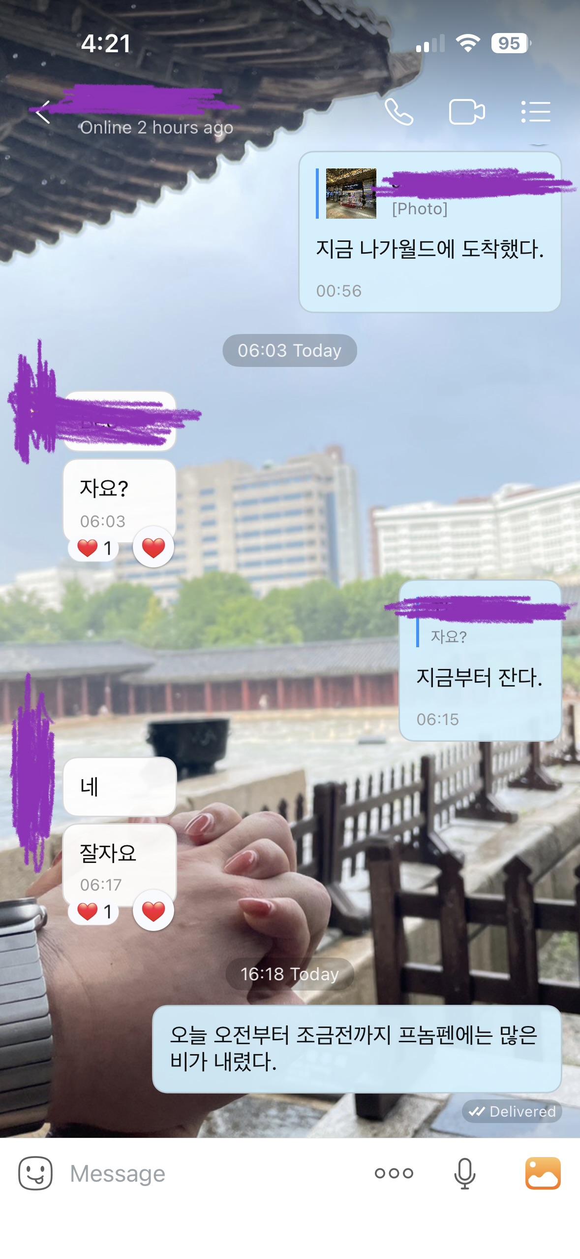 오늘 새벽늦게까지 갤럭시폴드7 생산 야간업무 마치고 오전일찍 퇴근한 하노이사마 연락은 스라이와 같이 있어 일부러 받지 않았지만 스라이 지금 먼저보내고 저멀리 하노이에서 갤럭시폴드7 열심히 생산중인 하노이사마에게 지금 안부보고로 스라이와의 투타임을 정식 마무리합니다.