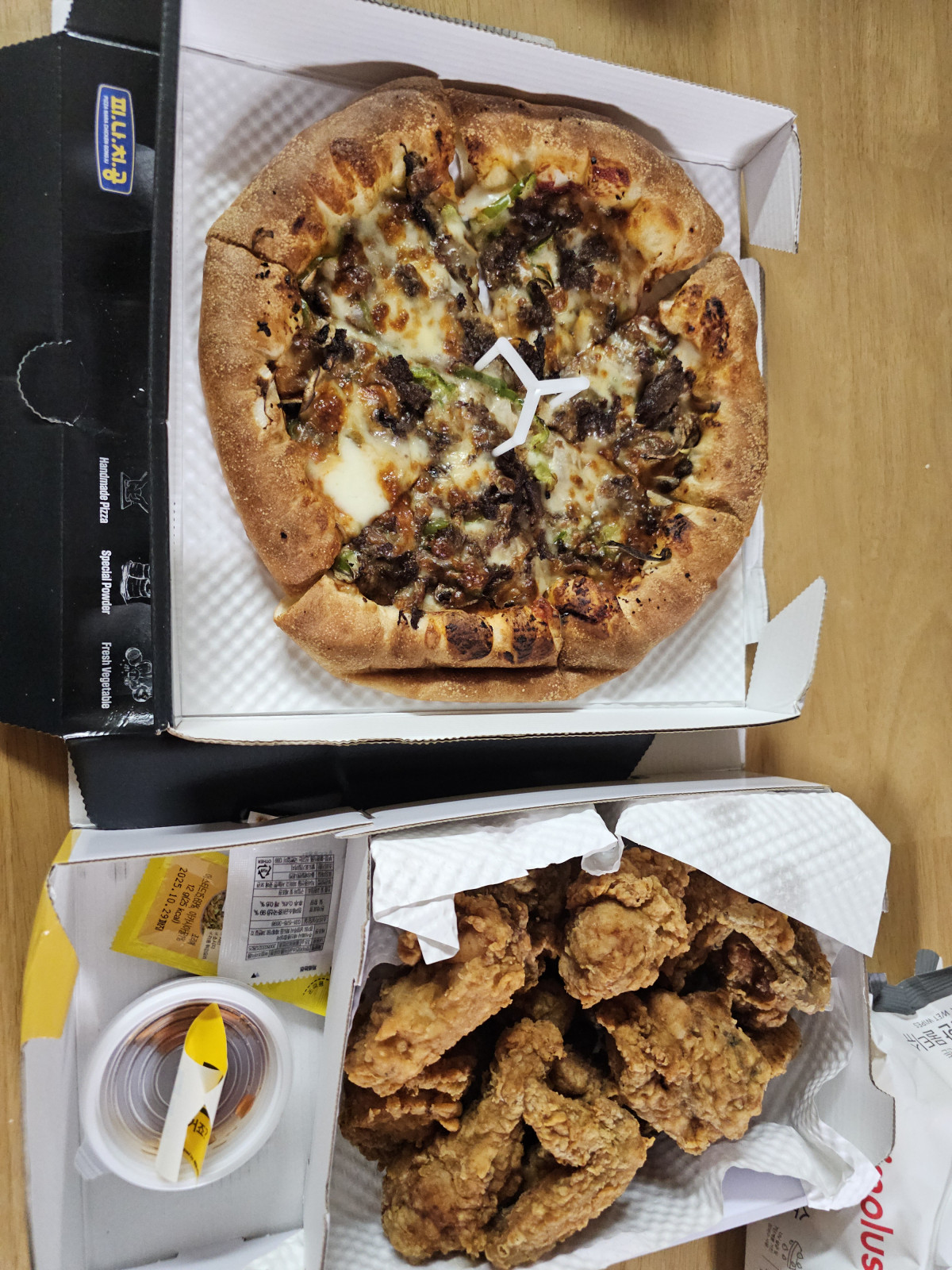 당시에는 피자 + 치킨 9900원이였던 걸로 기억하네요.