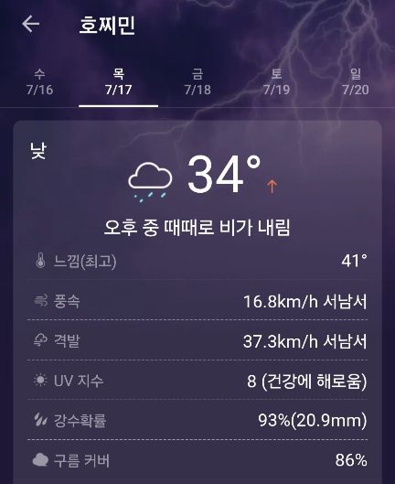 7월 17일 호치민+한국 날씨