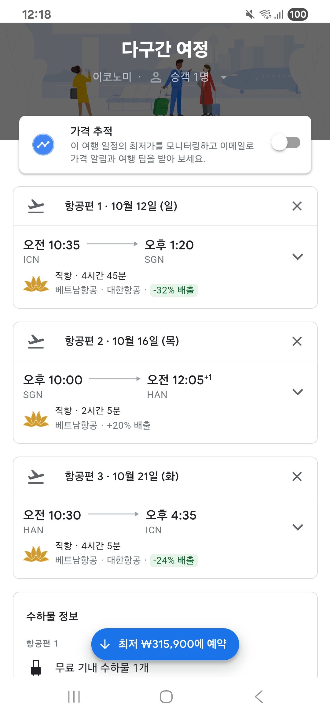 10월 다구간 비행기표 가격 괜찮네요