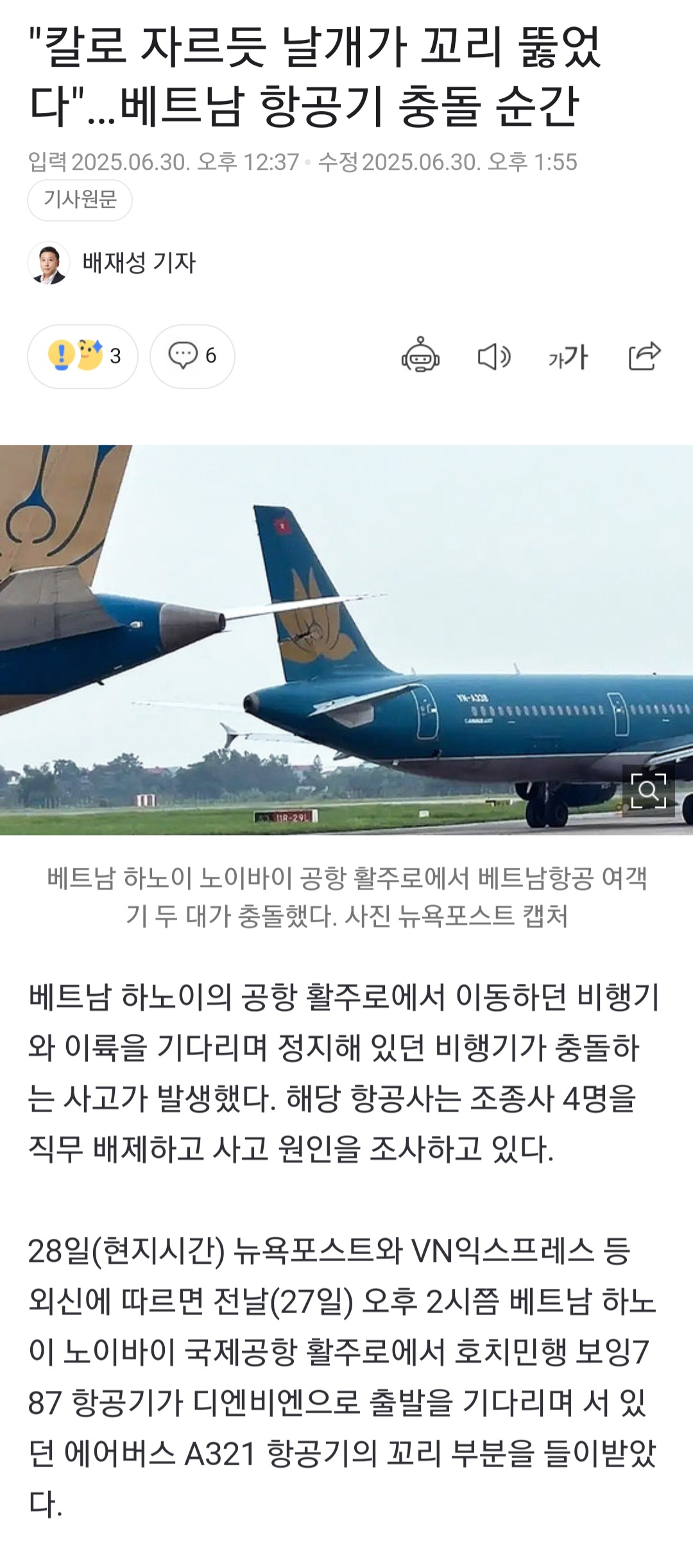 벳남 항공끼리 팀킬 했네요