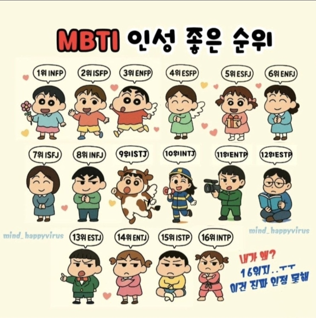MBTI 인성 좋은 순위