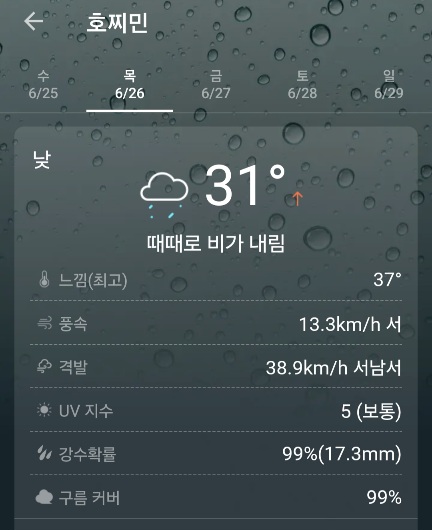 호치민 6월26일 날씨입니다