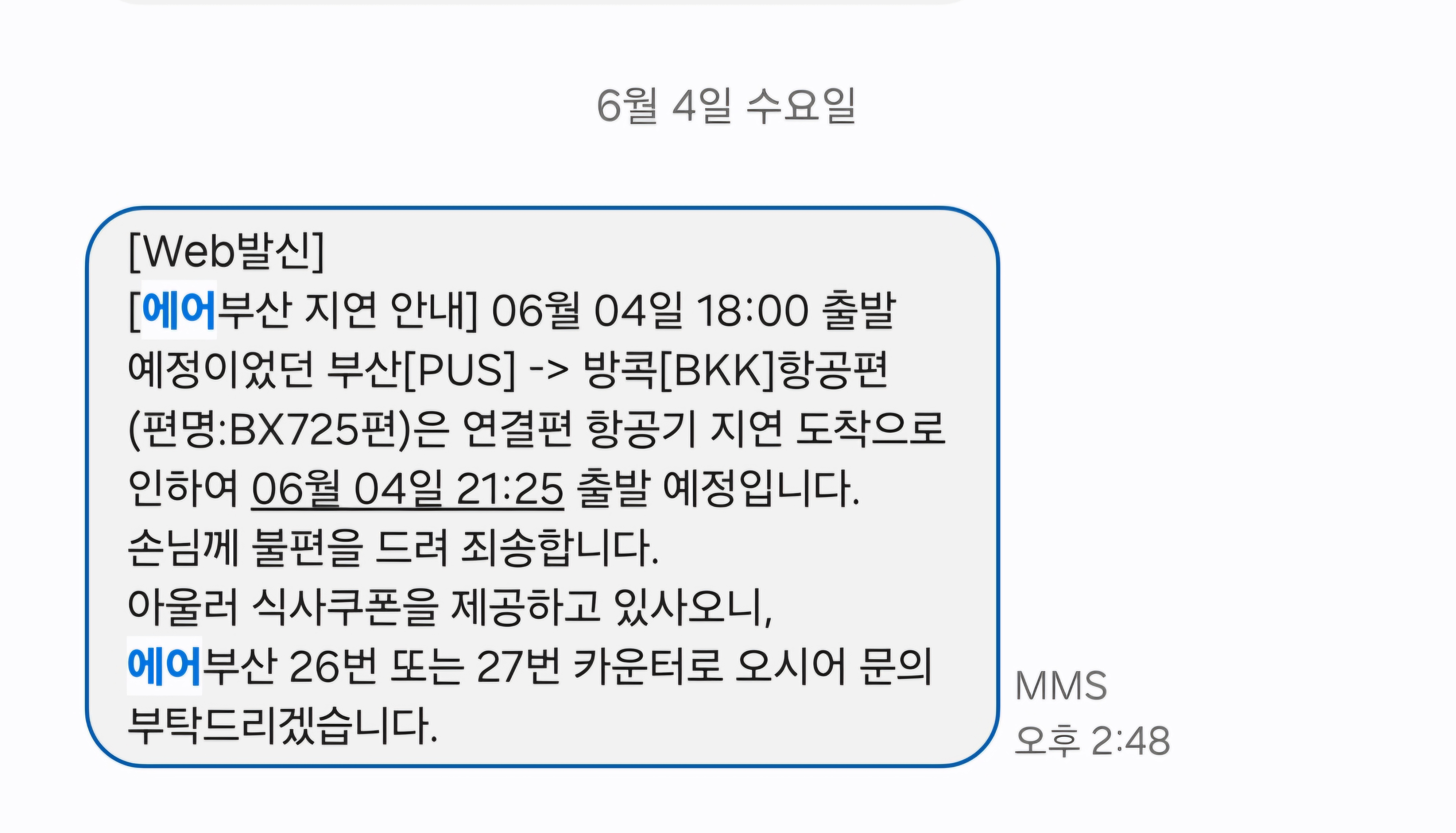 18시 출발이 21시 25분 지연 출발