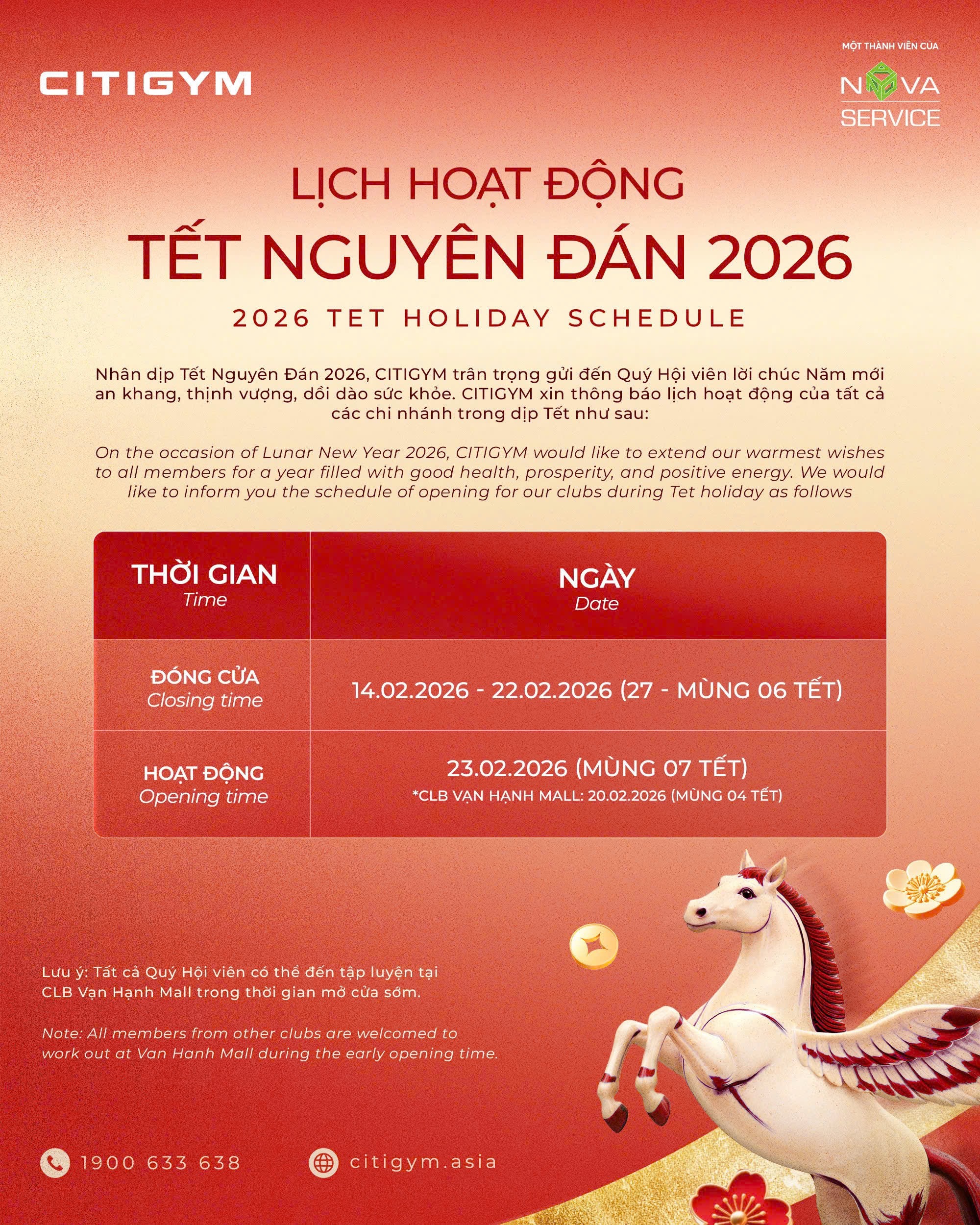 모든 회원은 조기 오픈 기간 동안 Van Hanh Mall 지점에서 운동하실 수 있습니다.