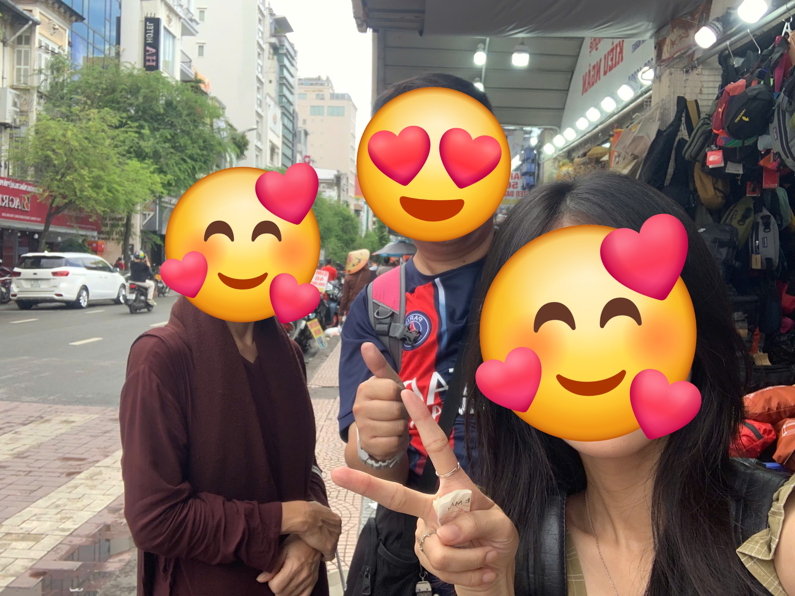 벤탄시장을 걸어가는데 앞에 스님같으신 분과 예쁜 ㄲㄱㅇ가 걸어가 있네요.