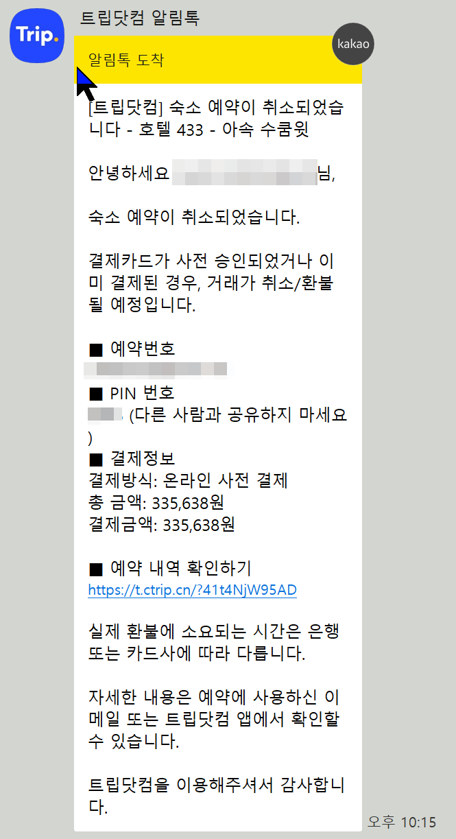 [해결] 숙소 예약취소되었습니다!!!